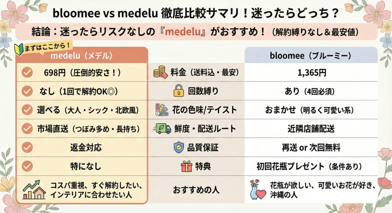 bloomee(ブルーミー)とmedel(メデル) 比較表