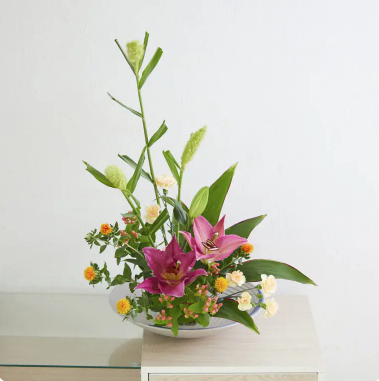 日本総合園芸では、水盤で生けるお花も選択することができます。